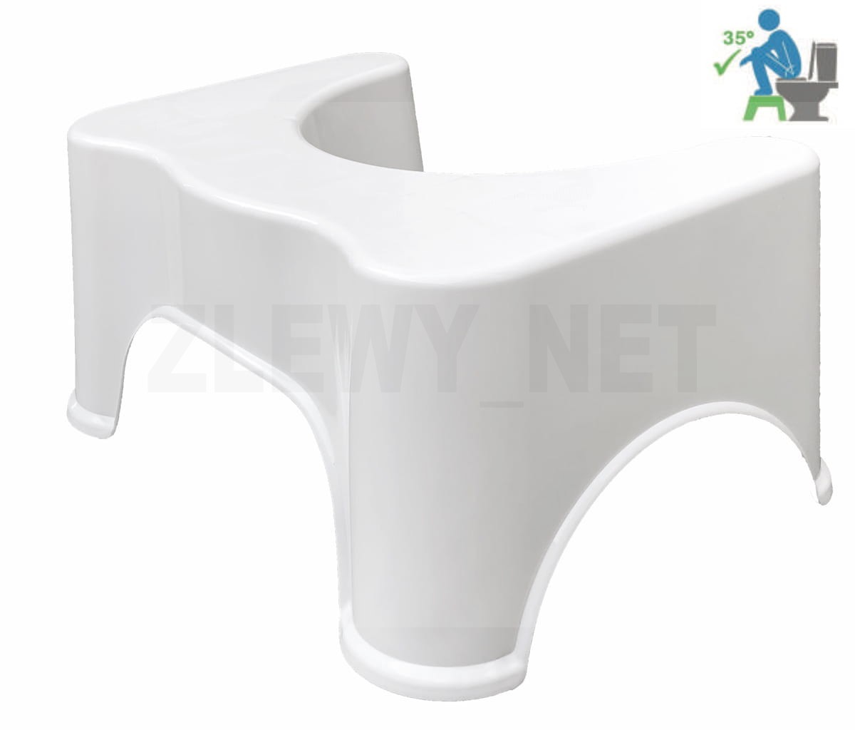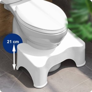 Podnóżek koryguje postawę podczas korzystania z toalety, dzięki czemu wypróżnienie jest łatwiejsze. Symuluje naszą naturalną pozycję co zapobiega powstawaniu hemoroidów. Prosty i sprawdzony sposób w leczeniu zaparć. Stołek powoduje podwyższenie kąta, zwieracz w pozycji kucznej (35°) zostaje w pełni rozluźniony, umożliwiają łatwe i pełne wypróżnianie